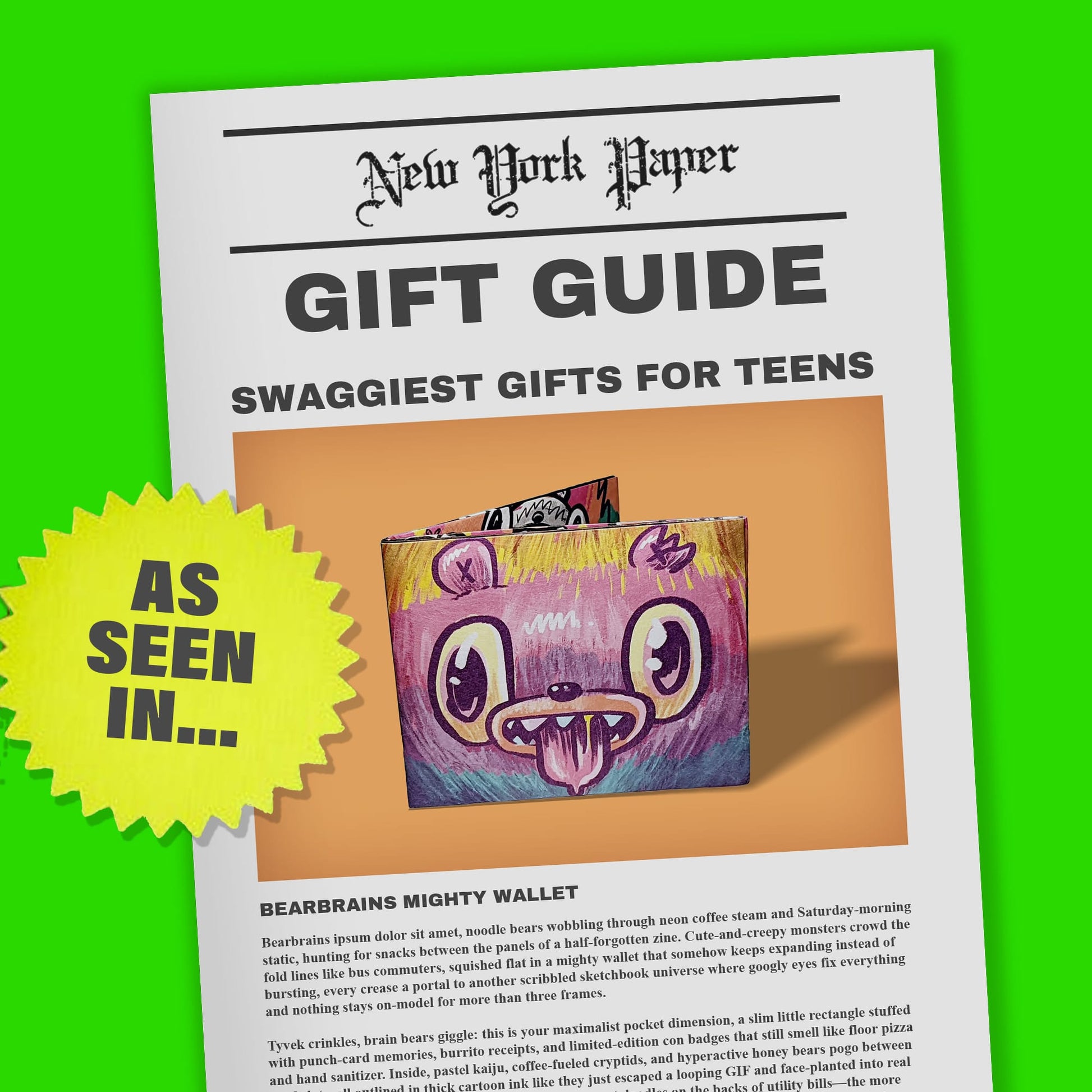 The Bearbrains Mighty Wallet takes the classic Tyvek® origami wallet and cranks the weird up to eleven. Covered in Nate Bear’s signature Bearbrains art, it looks like your sketchbook exploded… in the best way possible.