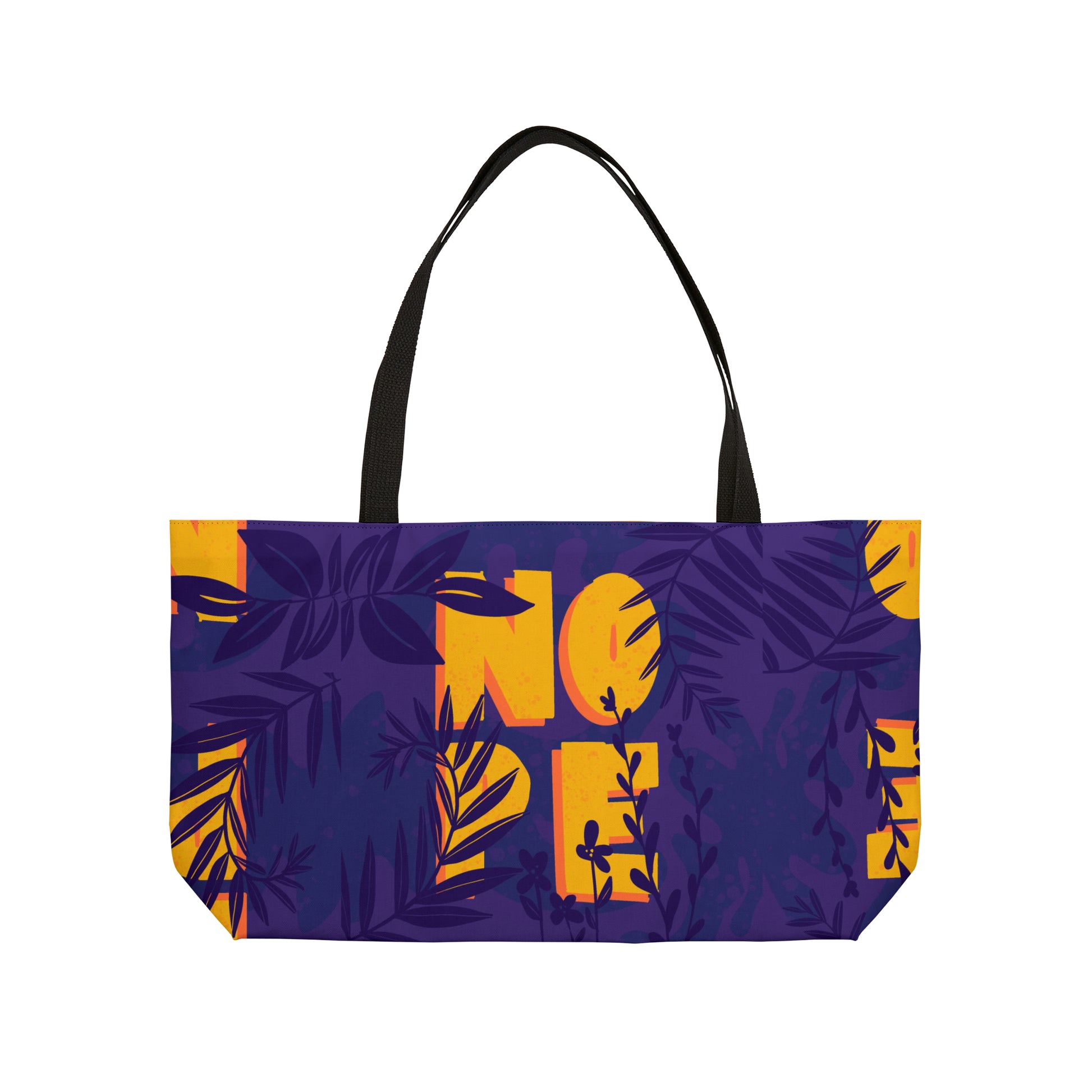 This personalized NOPE weekender bag comes in one size – 24" x 13" (60.9 cm x 33 cm) – perfect for those who love to travel light. Its t-bottom construction and black handles on 100% spun polyester in vibrant colors.