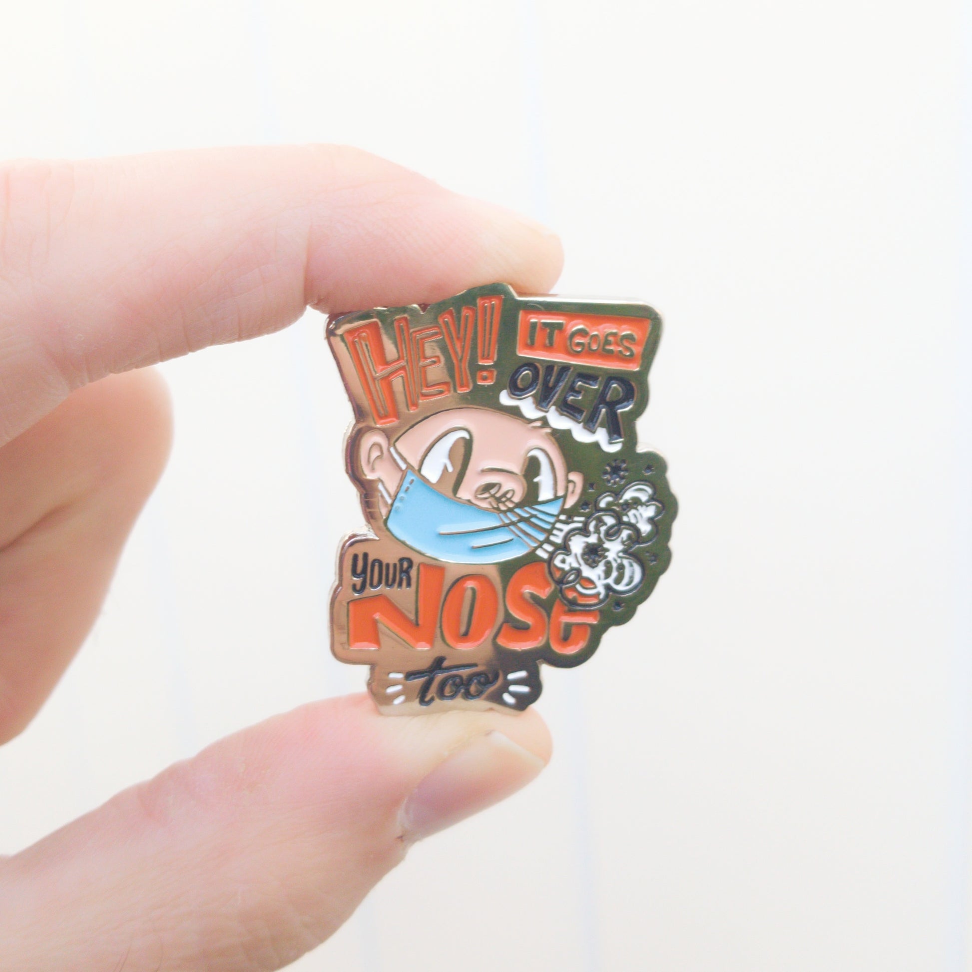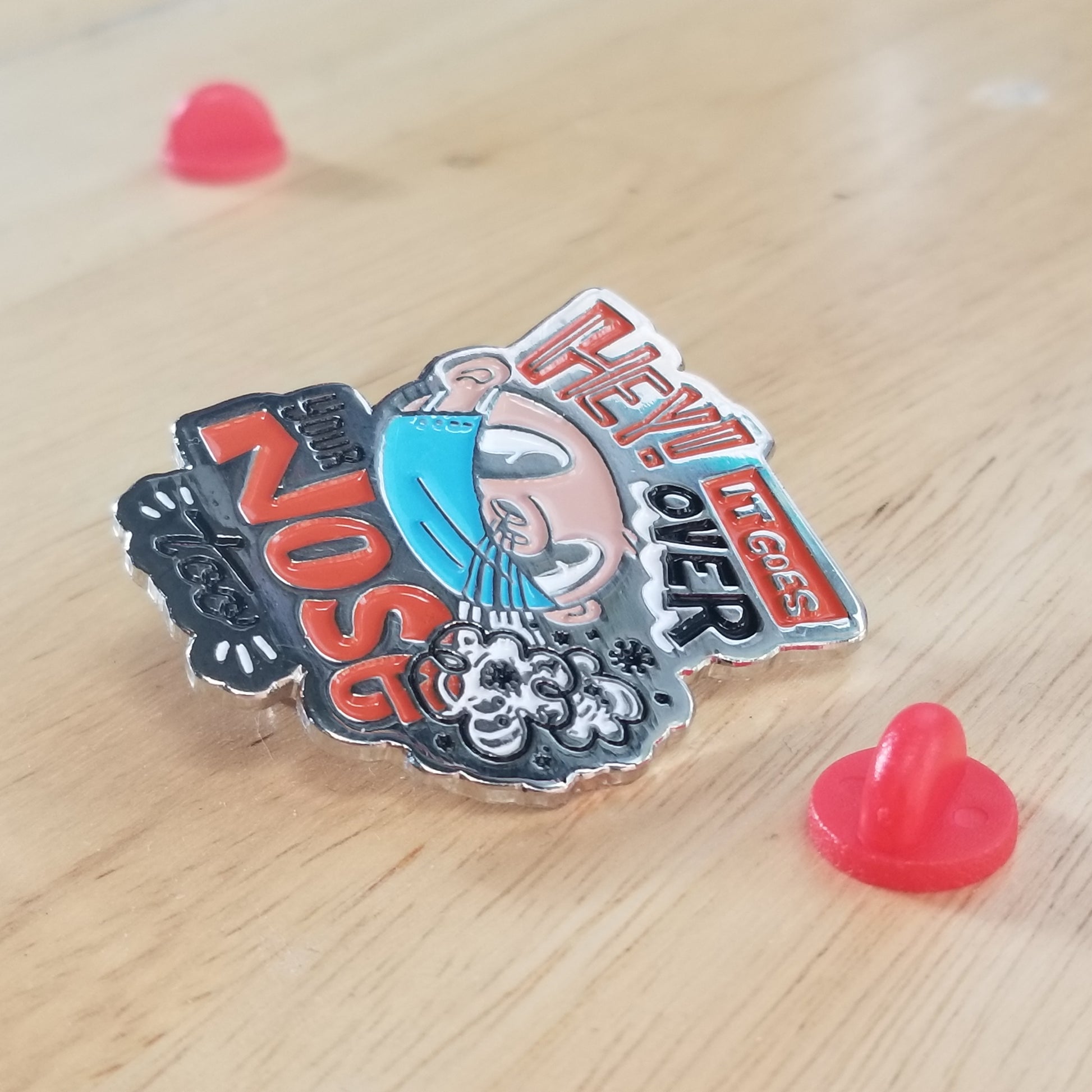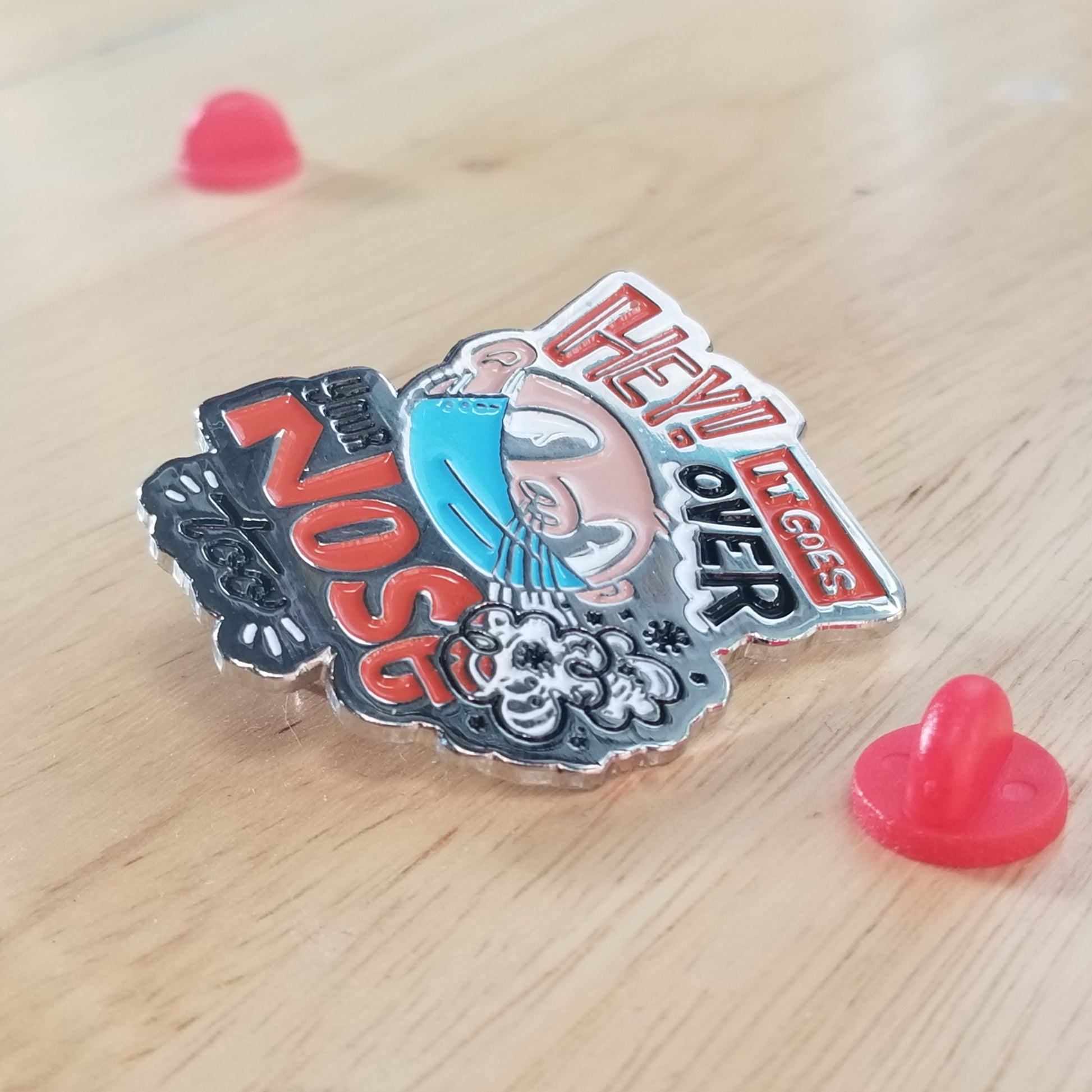 4 color enamel pin designed by Nate Bear with silver finish and back stamped artist's logo.